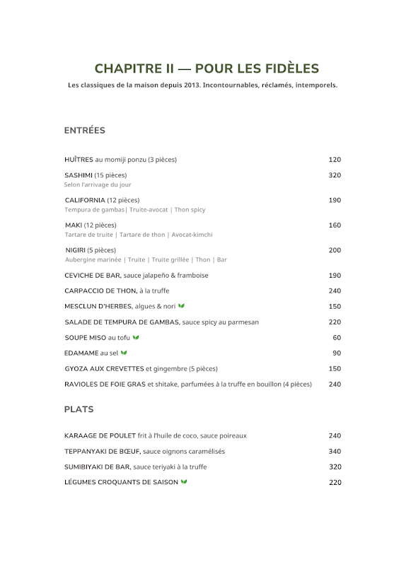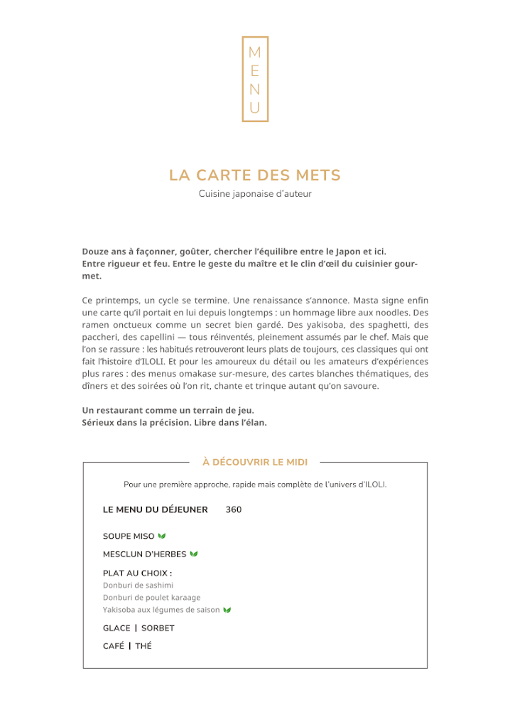 Chaque plat est pensé comme une œuvre d’art, alliant raffinement, saveurs authentiques et créativité moderne, dans le plus pur respect des traditions japonaises.